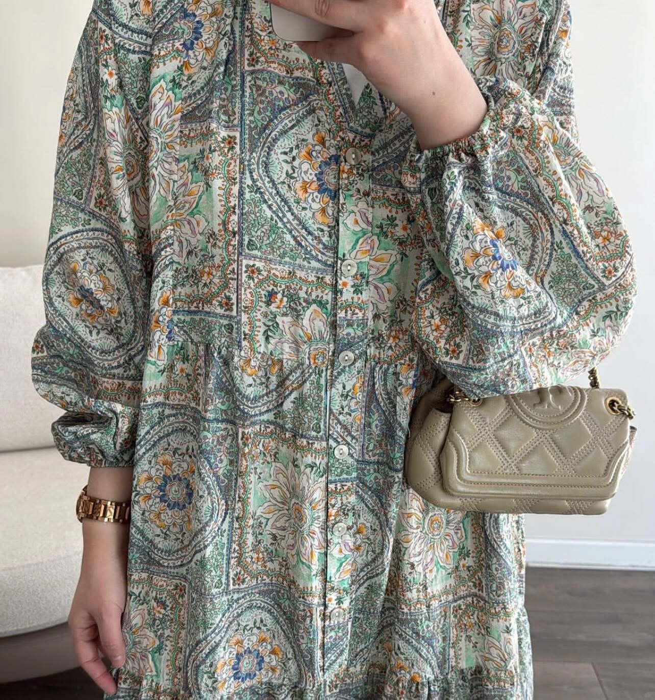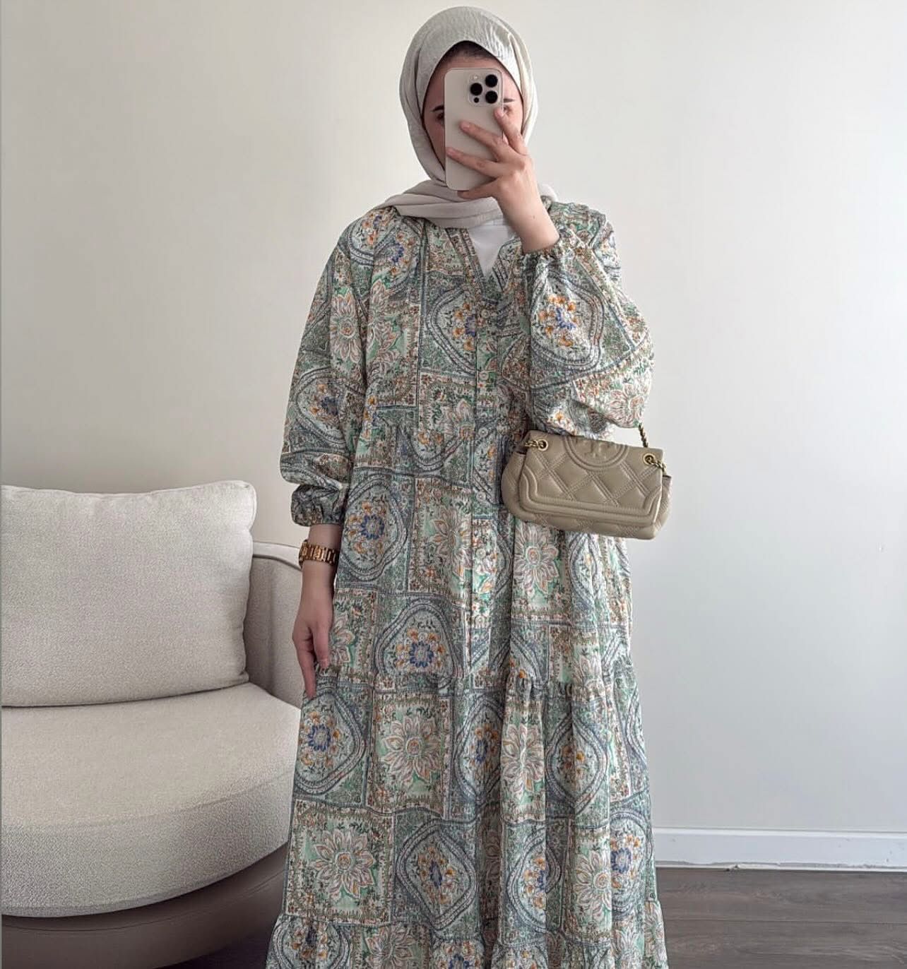 فستان منقوش تركي طوله 140 سم مقاساته 1و2